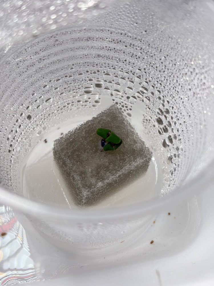 小さなスポンジが1つだけ余っていたので、切り込みを入れて3粒だけ蒔きました。